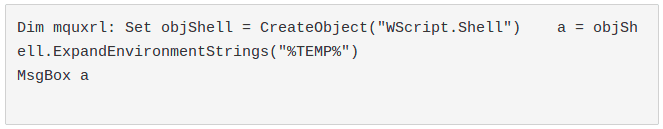 • ExpandEnvironmentStrings method of WScript.Shell Object is an Environ alternative to retrieve environment variables which not trigger by the examined tools.
