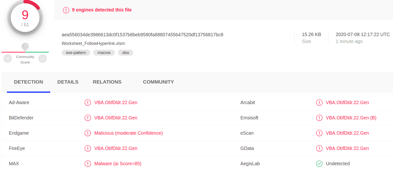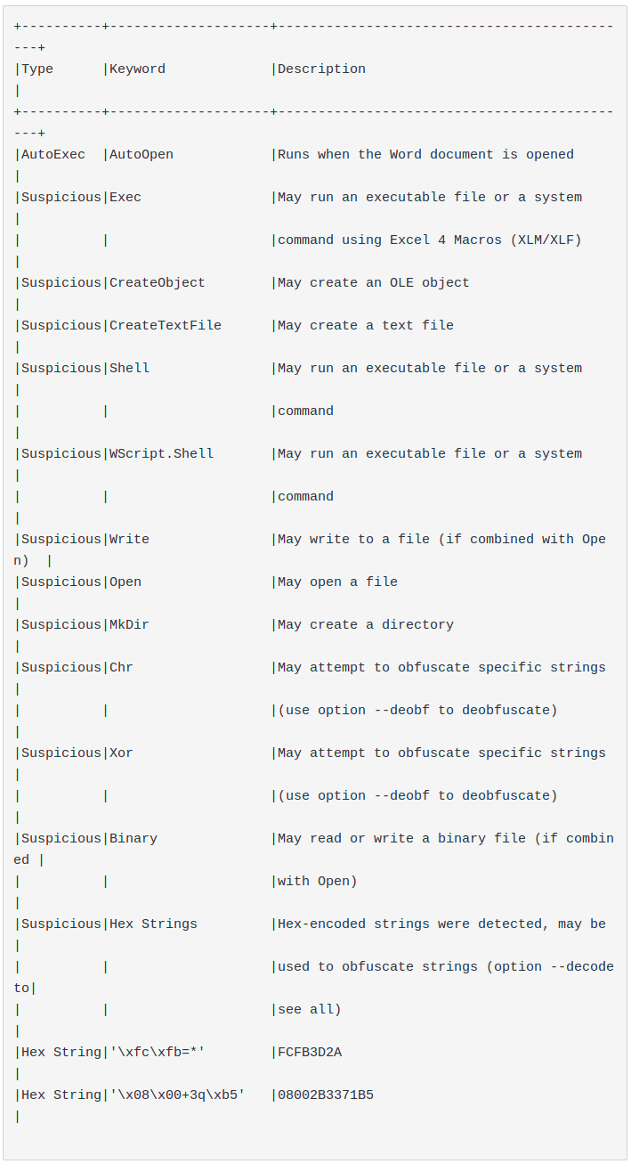 In order to detect the techniques proposed through olevba / mraptor, it would be important to note the following: