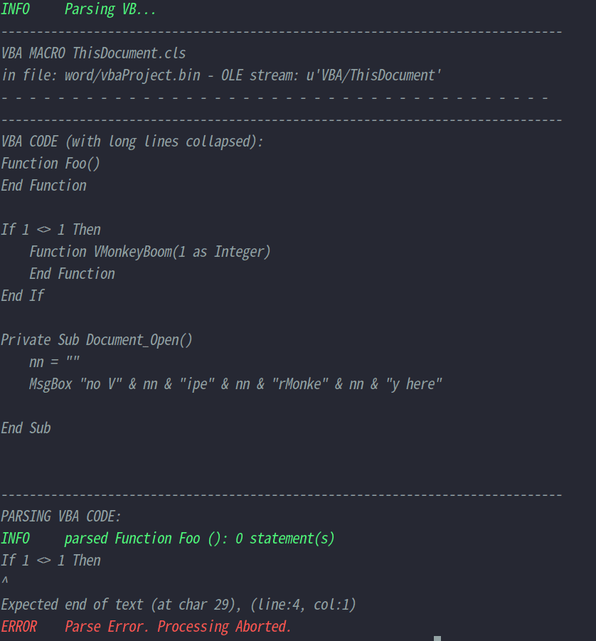The vmonkey parser will fail: