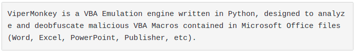• During the tests, we decided to include vipermonkey vba emulator in the scope.