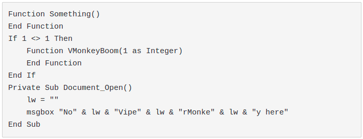 There are many ways to obfuscate a VBA macro, but how much do I have to obfuscate my macro to completely evade the analyses of a prepared blue team? It is important to know the weak points of a VBA obfuscation/evasion technique in order to detect it.