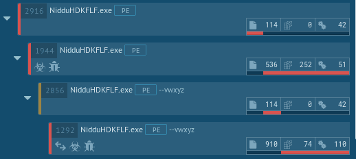 After having executed that command, we found that a new instance of the malware spawned as a child of “explorer.exe”.