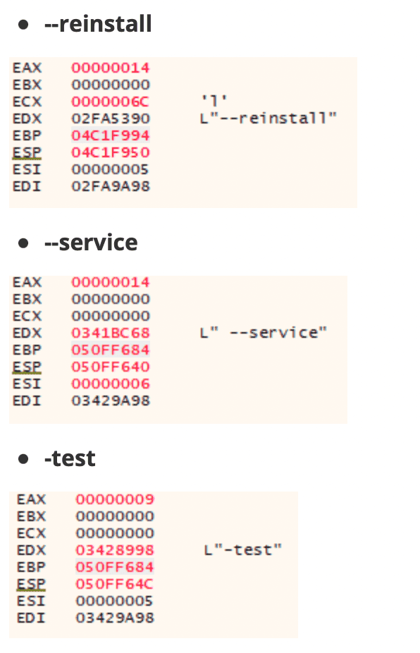 Pretty strange thing. We haven’t found the malware to actively use these arguments yet. However, stepping through code we discovered that: