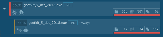 While debugging, we noticed that Gootkit does not check only if a parameter called “ --vwxyz” was passed to the command line. Also it checks if other 3 parameters: