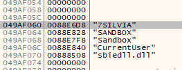 - it checks if the computer name is “7SILVIA” or “SANDBOX”, if the username is “CurrentUser” or “Sandbox” or if “sbiedll.dll” has been loaded.