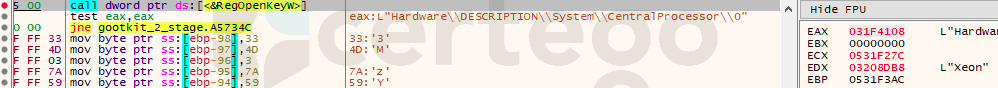 - It checks if the registry key “HKLM\HARDWARE\DESCRIPTION\System\CentralProcessor\0\ProcessorNameString” contains the word “Xeon”