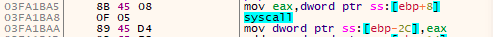 Specifically, in case the process is running in a 32-bit environment, it would use the SYSENTER command to switch into the Kernel mode, while, on the contrary, it would use the SYSCALL command to perform the same operation.