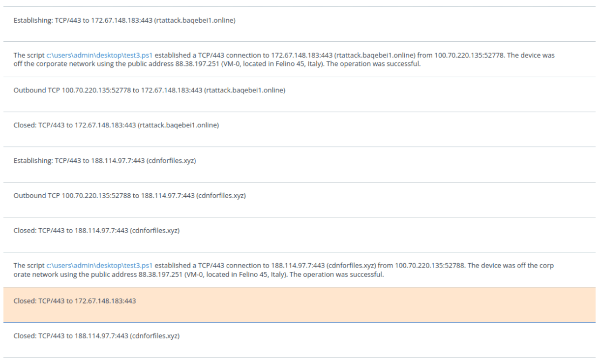 Dettaglio delle connessioni eseguite nell’arco dell’esecuzione della kill chain