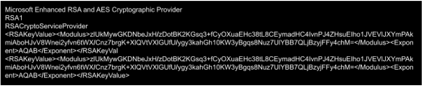 An analysis of the memory dump of the process detected some RSA strings related to a public key: