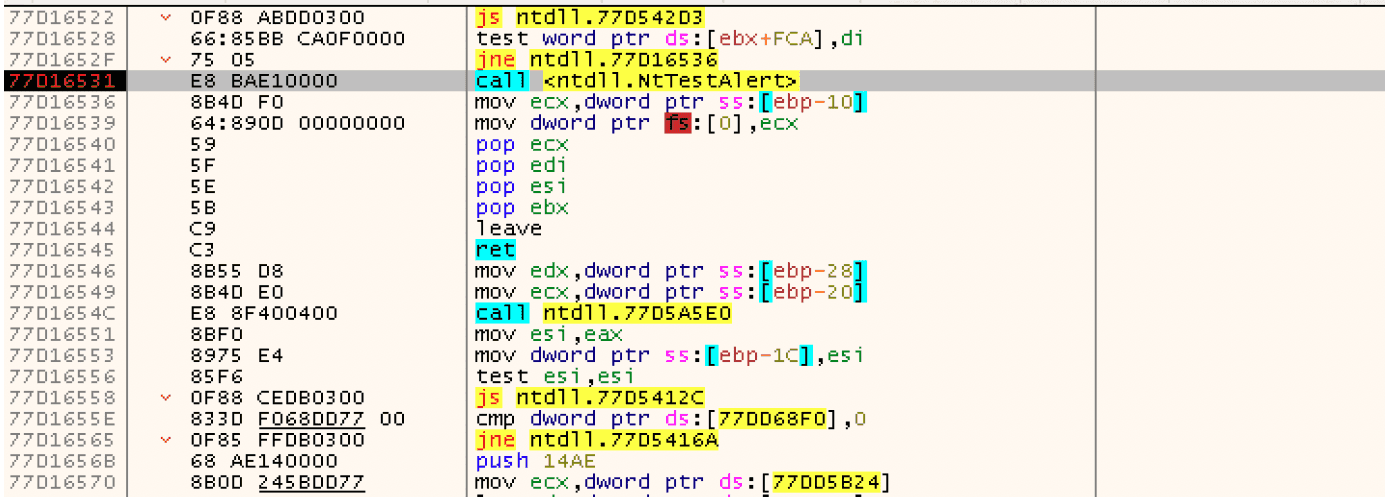 Several anti-debugging techniques were also found. The first one is based on a function called GetTickCount(): it counts the seconds between 2 points inside the binary execution and if the time is too high the program is running in a debugger and the original behavior is modified: