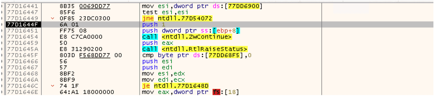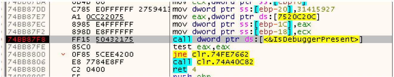 Another API call used in the binary is the IsDebuggerPresent(), a function used to know if the binary is running in a debugger environment. If true, the original behavior is modified: