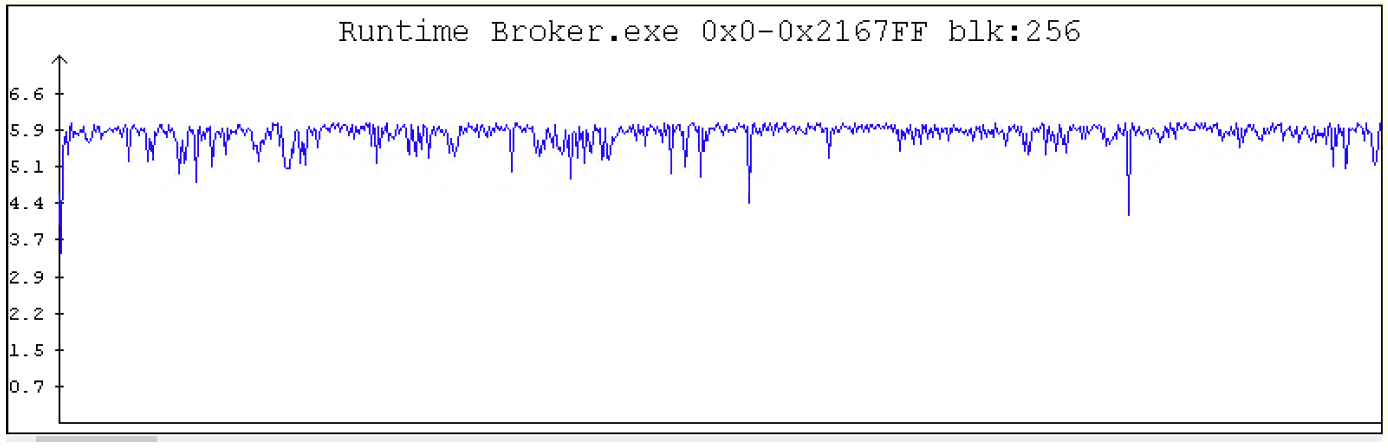 In this case the entropy is high and constant, that’s a confirmation of obfuscation and malicious behavior.