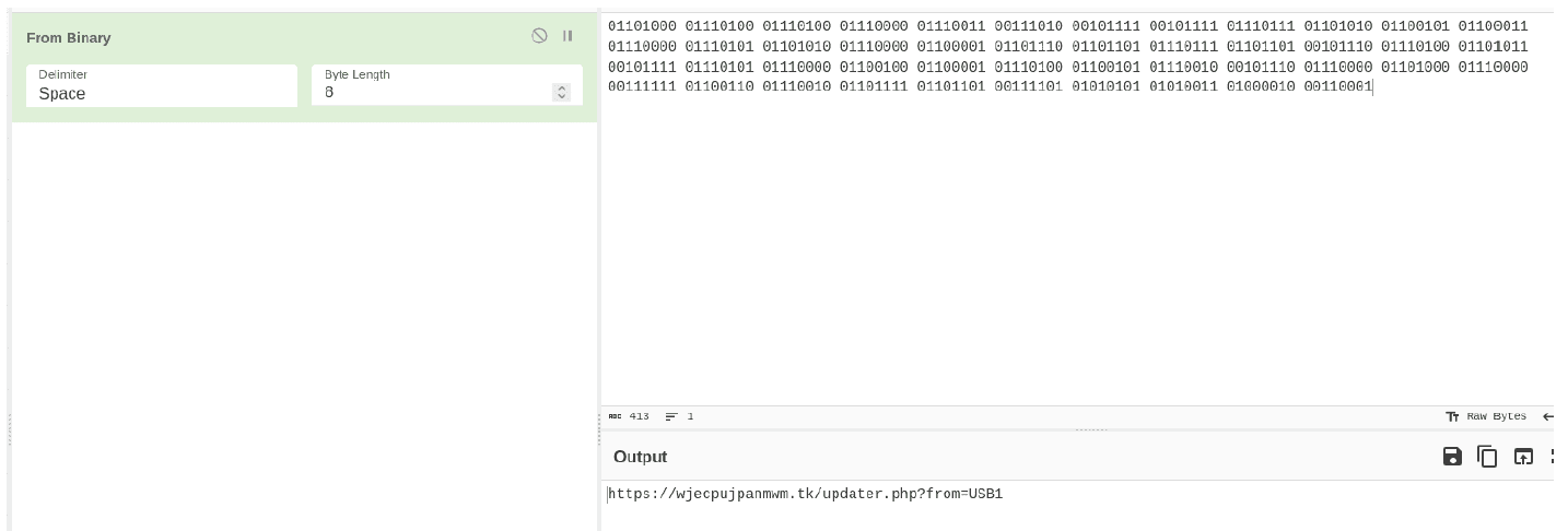 then the powershell script makes the request to .tk domain with from=USB&user=