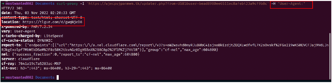 The download of the malware could be reproduced using curl, removing the User-Agent value:
