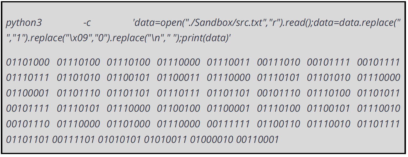 It then, converts the spaces tabs to 1 and 0 and new-lines to